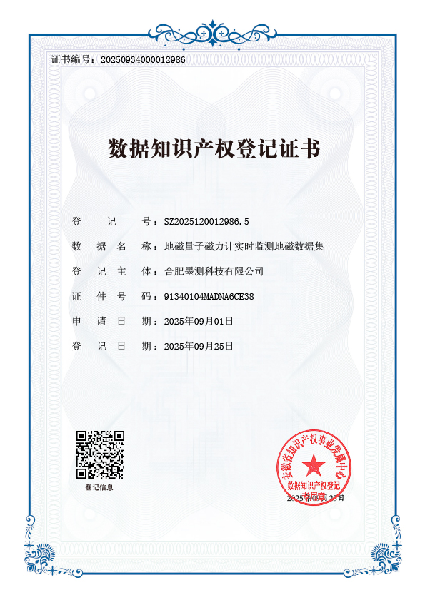 地磁量子磁力计实时监测地磁数据集 数据知识产权证书