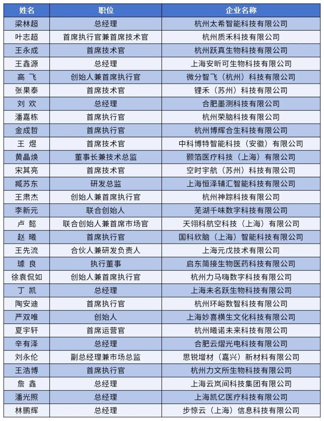 (榜单排名不分先后,按公示顺序刘欢总经理居第7位)