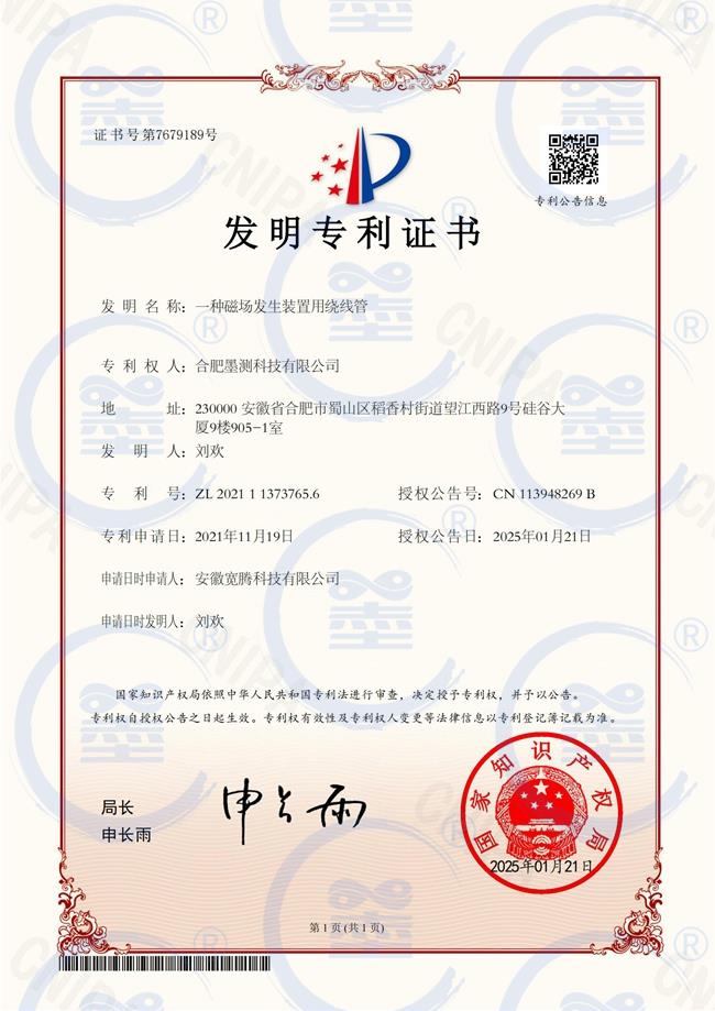 发明专利证书-一种三维磁场的发生装置