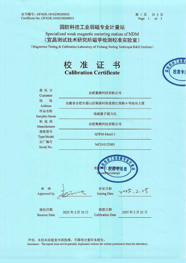 V1.1地磁量子磁力计校准证书